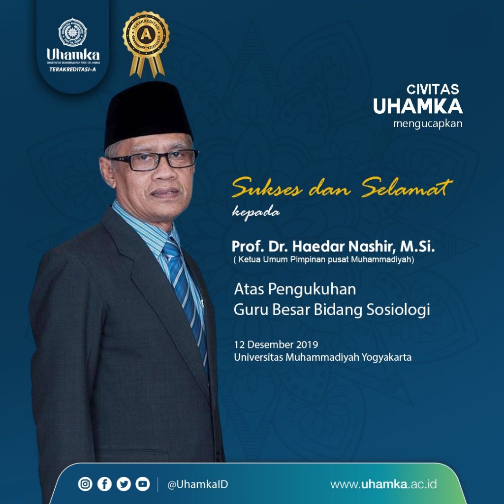 Jakarta, 12 Desember 2019 | Civitas akademika Fakultas Teknik UHAMKA mengucapkan selamat dan sukses atas pengukuhan Guru Besar bidang Sosiologi kepada Prof. Dr. Haedar Nashir, M.Si (Ketua Umum PP Muhammadiyah). Semoga menginspirasi dan berkah untuk kita semua. -Dekan FT