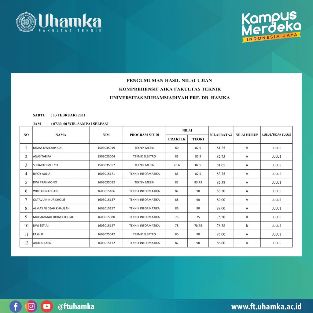 Pengumuman Hasil Nilai Ujian AIKA FT 2021