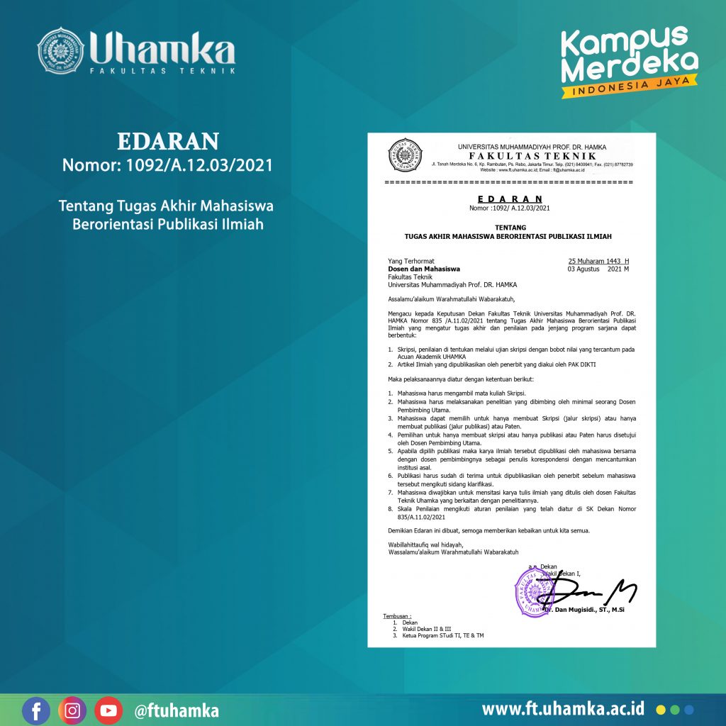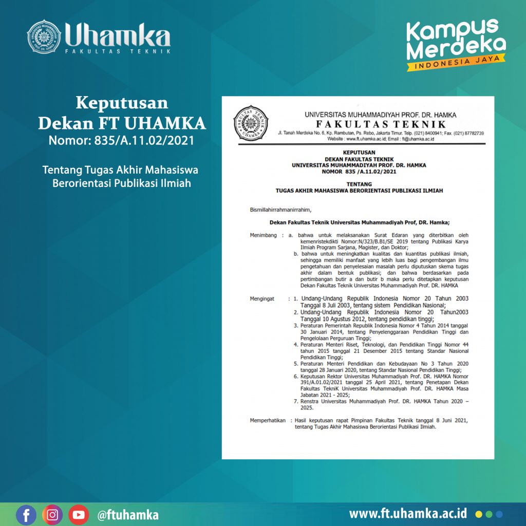 SELAMAT ATAS TERPILIHNYA MAHASISWA FT UHAMKA DALAM KEGIATAN KREDENSIAL MIKRO MAHASISWA INDONESIA (KMMI) DIREKTORAT JENDRAL PENDIDIKAN TINGGI, KEMENTRIAN PENDIDIKAN DAN KEBUDAYAAN REPUBLIK INDONESIA Selamat kepada mahasiswa dan mahasiswi Fakultas Teknik, Universitas Muhammadiyah Prof. Dr. Hamka atas terpilihnya untuk mengikuti kegiatan KREDENSIAL MIKRO MAHASISWA INDONESIA (KMMI) yang diselenggarakan oleh Direktorat Jenderal Pendidikan Tinggi, KEMENDIKBUD RI […]